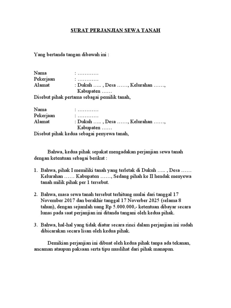 Surat Perjanjian Sewa Rumah Sederhana : Download Contoh Surat Perjanjian Sewa Tanah yang Baik / Surat perjanjian kontrak rumah dibuat secara tertulis bertujuan agar tidak terjadi hal yang tidak diinginkan di kemudian hari.